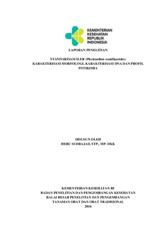 Heru, Sudrajad and Harto, Widodo and Nurul, Husniyati Listyana and Fauzy, Fauzy and Dian, Susanti and Harsono, Harsono and Didik, Suharso and Juniman, Juniman and Kliwon, Kliwon and Suharso, Suharso and Sutarmin, Sutarmin STANDARISASI ILER (Plectranthus scutellayoides) KARAKTERISASI MORFOLOGI, KARAKTERISASI DNA DAN PROFIL FITOKIMIA. Technical Report. Balai Besar Penelitian dan Pengembangan Tanaman Obat dan Obat Tradisional Tawangmangu. (Unpublished)