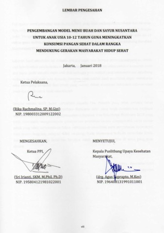 Rachmalia, Rika, RR Pengembang Model Menu Buah dan Sayur Nusantara Untuk Anak Usia 10-12 Tahun Guna Meningkatkan Konsumsi Pangan Sehat Dalam Rangka Mendukung Gerakan Masyarakat Hidup sehat. Badan Penelitian dan Pengembangan Kesehatan.