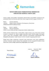 Badan Kebijakan Pembangunan Kesehatan, - (2025) Perjanjian Kinerja Tahun 2025 Badan Kebijakan Pembangunan Kesehatan(Akhir). Badan Kebijakan Pembangunan Kesehatan.